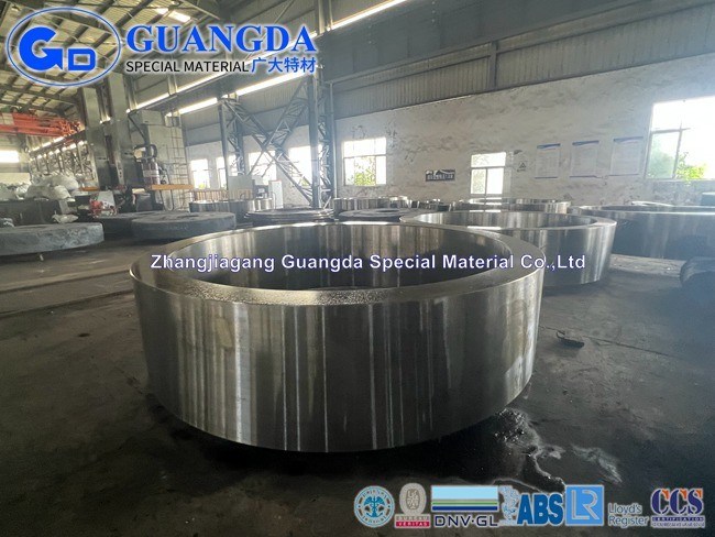 Großer geschmiedeter Ringfreier raum der Guangda-Versorgungshohen qualität oder halb fertig oder Fertigteile für Wellenfertigung. Wärmebehandlung und Schruppen sind von unserer Firma verfügbar. Wir können geschmiedete Ringe anbieten, die entsprechend Ihrer Form, Größe und Material besonders angefertigt werden können.